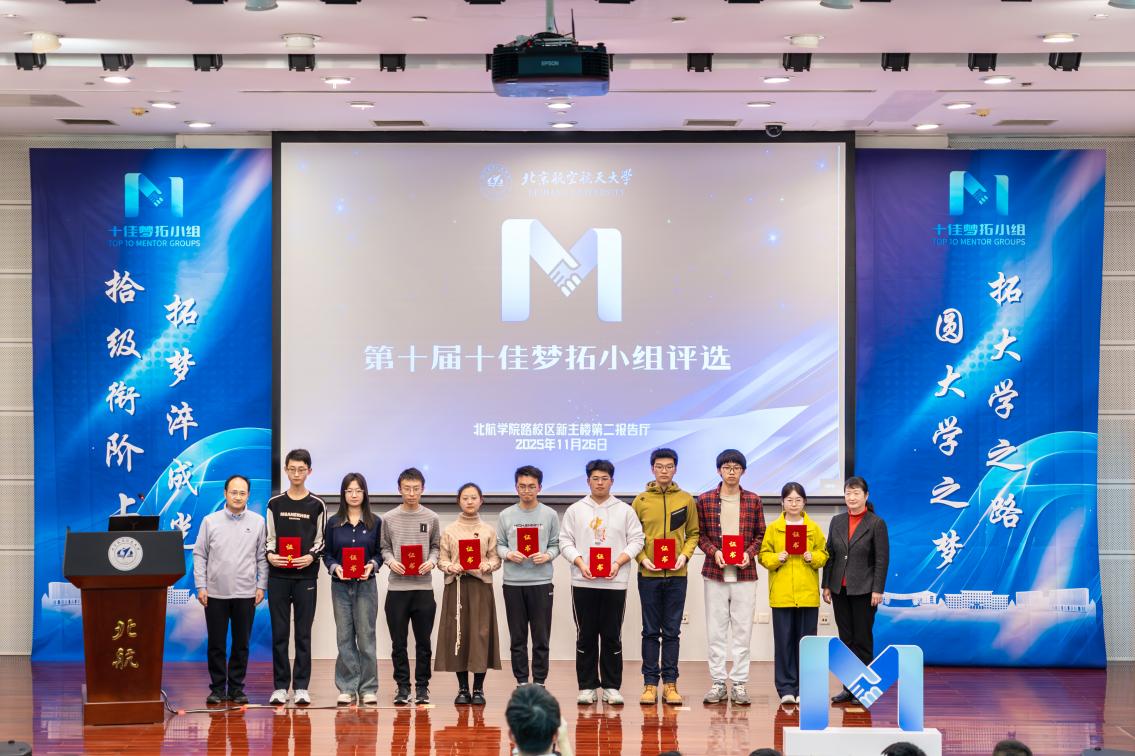 为深化“梦拓”计划的育人效果,传承弘扬以“空天报国”为内核的北航精神,充分发挥优秀朋辈的示范引领作用,有效支撑北航高质量人才培养体系建设,11月26日下午,第十届十佳“梦拓”小组答辩在学院路校区新主楼第二报告厅举行。