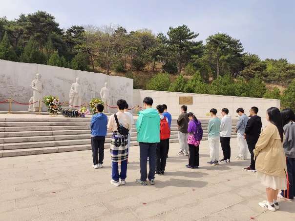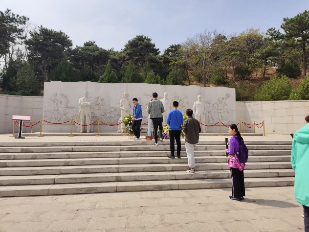 随着讲解员娓娓道来英雄们的故事,那一幅幅的历史画卷仿佛在同志们的眼前展开,吴石将军在赴台前对好友说到:“自己的决心已经下得太晚了,为人民做的事太少了。现在既然还有机会,个人风险算不了什么”。“所怀者何?天下有饥者,如己之饥;天下有溺者,如己之溺耳。民族危急,别亲离子而赴水火,易面事敌而求大同。”这些字安静地被镌刻在广场上,同那四尊洁白的塑像一同沐浴着山谷中的和煦阳光。党员同志们在雕像前默哀一分钟,随后依次走上前去,向英雄及无名英雄们敬献菊花,缅怀为新中国建立付出热血和生命的革命先辈们。