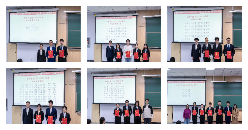 大会上宣读 2024-2025 年度校级、院级“标兵团支部”“优秀团支部”“优秀团干部”“优秀学生干部”“优秀团员”评优结果,由书院领导及辅导员为获奖同学颁发证书。