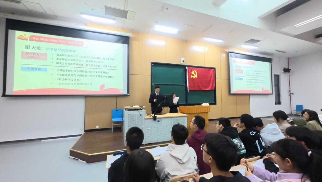 11月2日晚,致真书院第十四期“星火”党建工作坊第二次党课在J0-002举行。本次党课由马克思主义学院梁天屹老师主讲,主题为《学习“十五五”规划建议,领会党的二十届四中全会精神》。第十四期“星火”党建工作坊全体160名学员共同参与了本次学习。