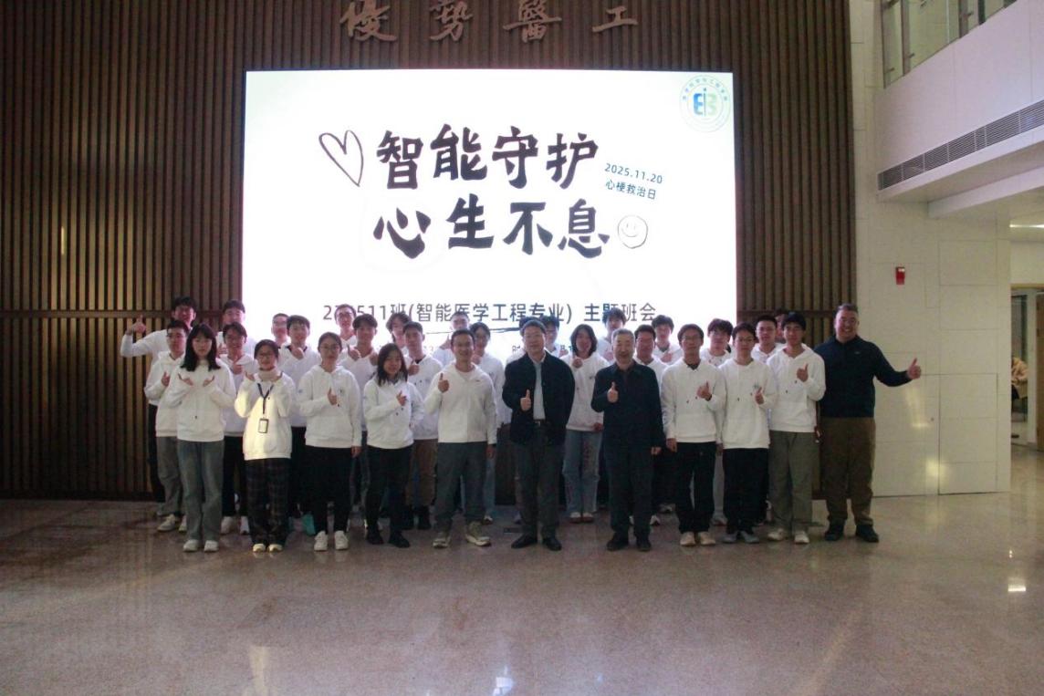 为深入学习贯彻党的二十届四中全会精神,迎接我国第12个“心梗救治日”的到来,11月19日下午,医学科学与工程学院234511班“智能守护,心生不息”主题班会在学院路校区五号楼301会议室举行。副校长吕卫锋出席班会并与师生亲切交流。医学科学与工程学院相关负责人、班主任、专兼职辅导员及全班学生共同参会,班会由234511班心理委员吴静伊主持。