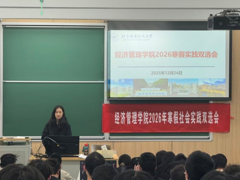 为深入贯彻实践育人理念,服务国家战略与社会发展需求,引导学生走出校园、深入社会一线,在实践中受教育、长才干、作贡献,经济管理学院于近日晚在主楼323教室举办2026年寒假社会实践双选会,为学生实践团队搭建起双向选择、经验交流与资源对接的平台。